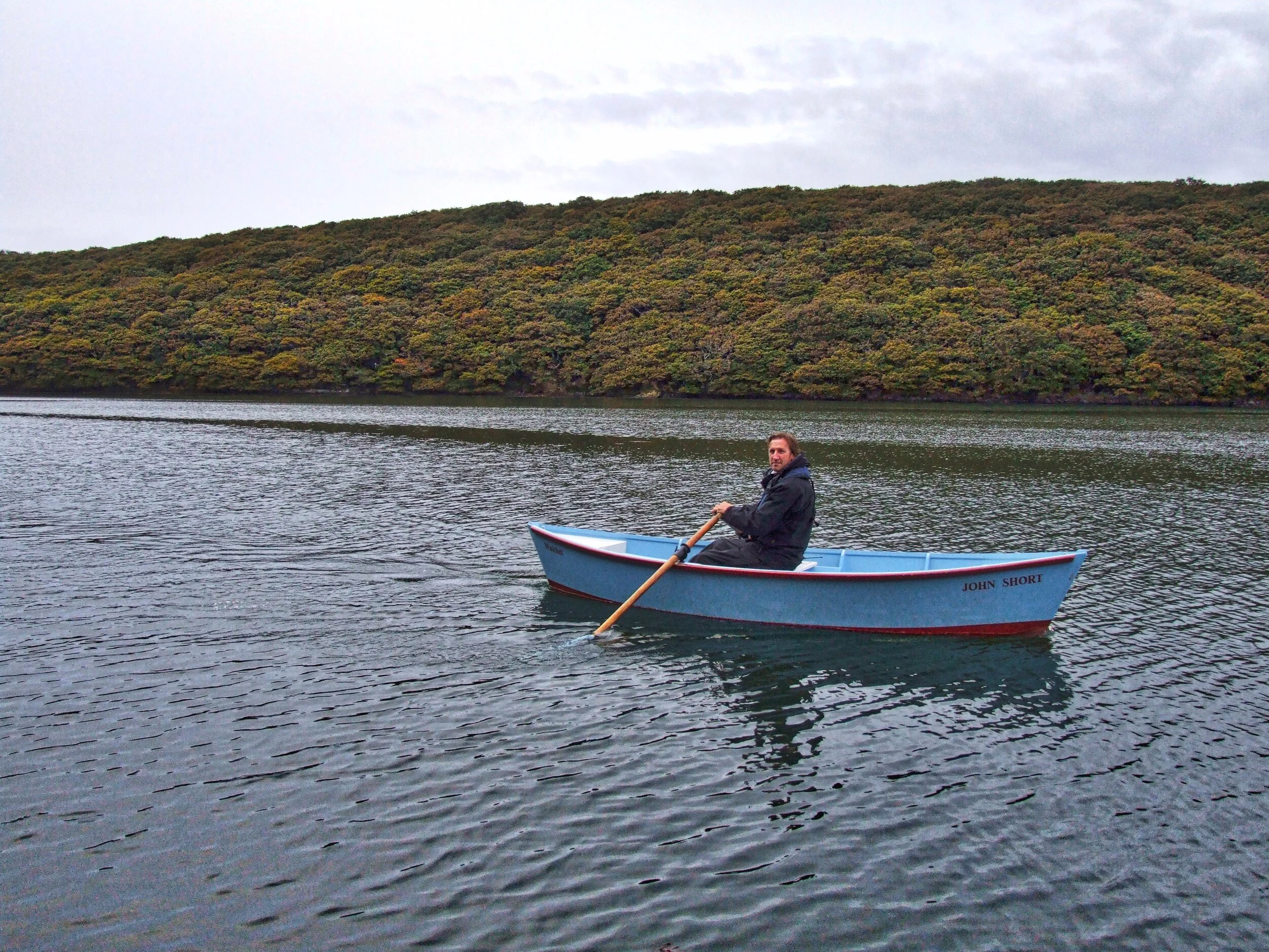 Martin rowing a Watchet Flatner near Frenchman’s Creek