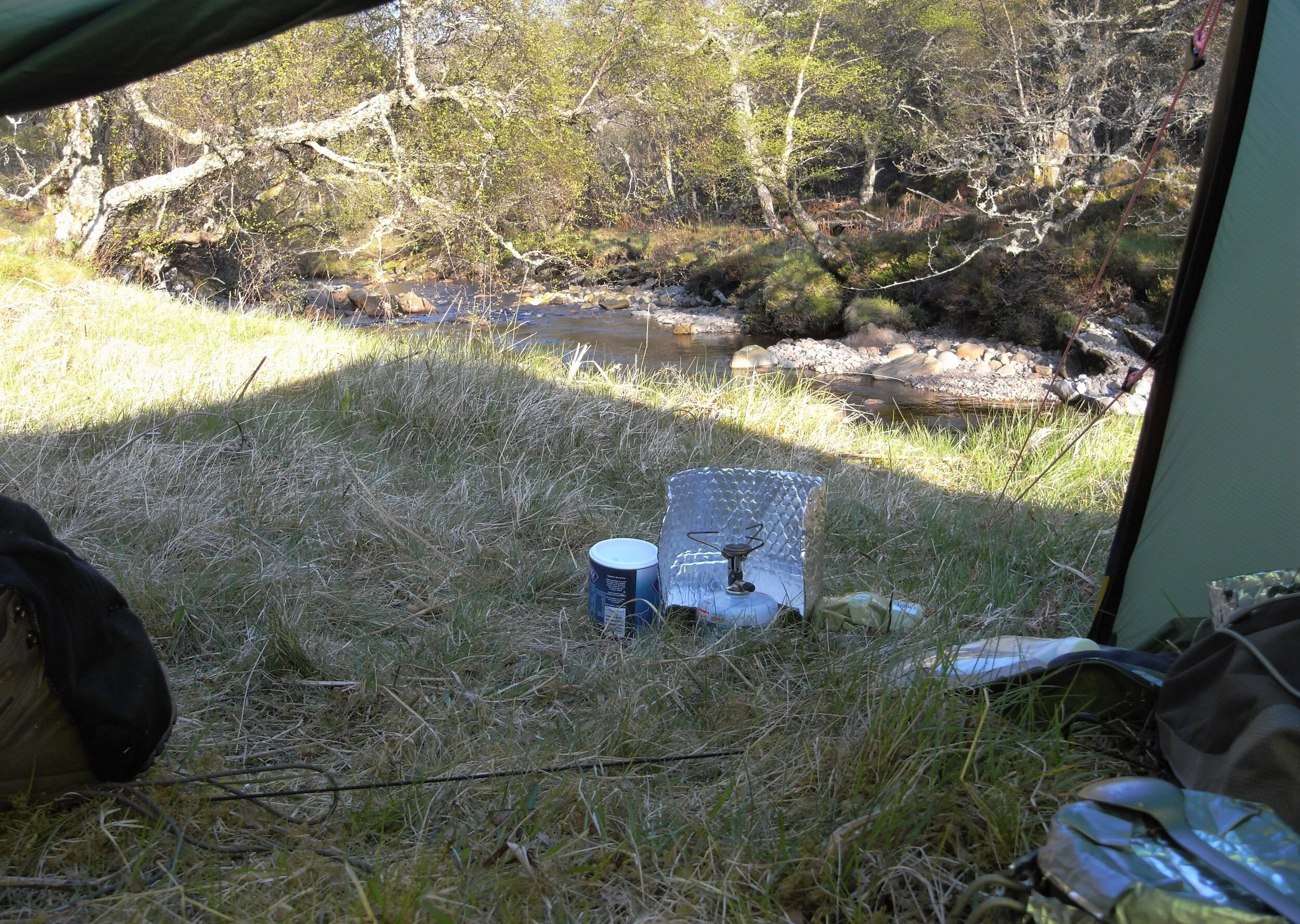 Dinner followed by cake which I’d bought in Kinloch Rannoch made things seem better. This had been another day of brilliant sunshine and a strong east wind, and my log notes that it was my first complete day with dry feet.