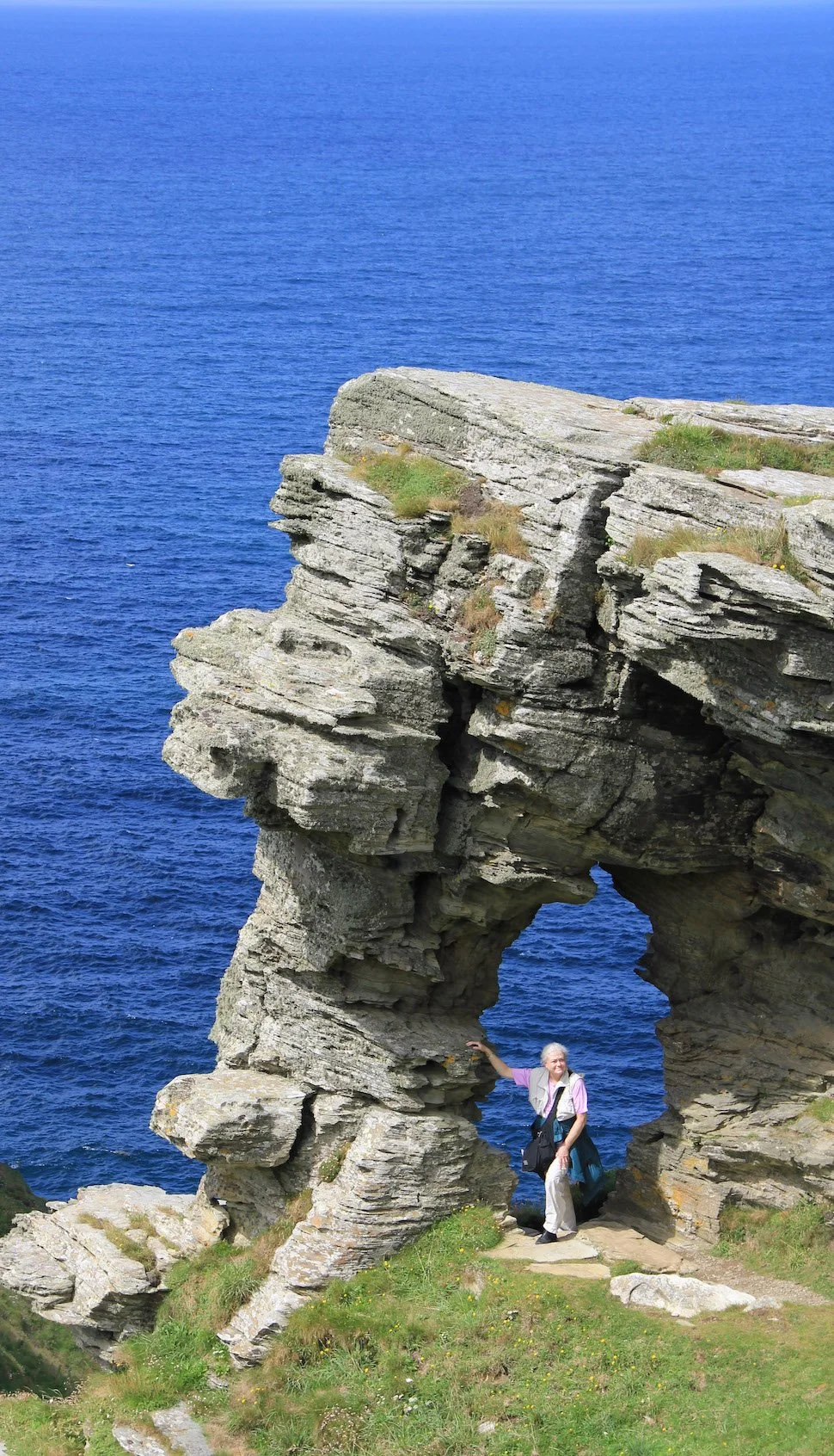After we’d waited our turn, and Emily had duly taken a picture of me looking grockle-like in the rocky and vertiginous window, we parted and I strode off along the coast.